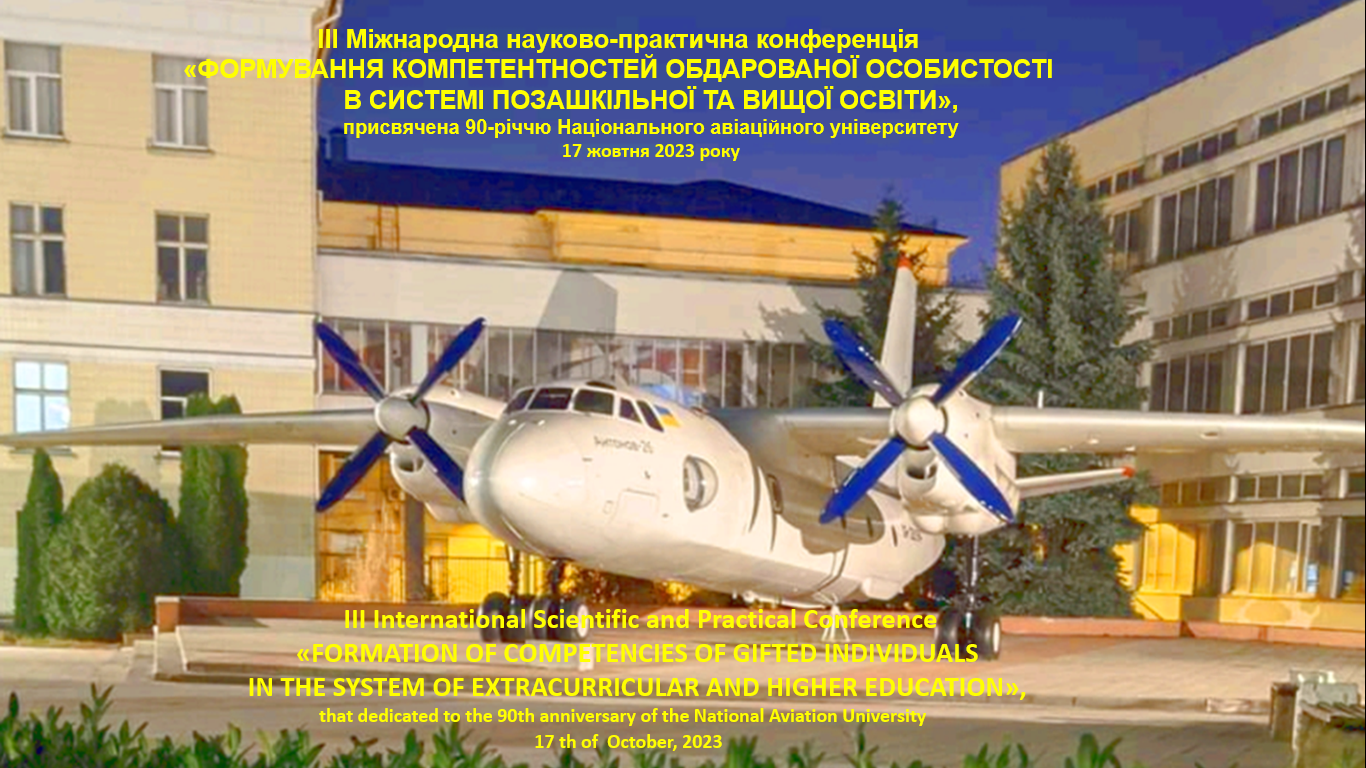 17 жовтня 2023 р. в Національному авіаційному університеті відбулася ІІІ Міжнародна науково-практична конференція «Формування компетентностей обдарованої особистості в системі позашкільної та вищої освіти» / IIІ International Scientific and Practical Conference «Formation of Competencies of Gifted Individuals in the System of Extracurricular and Higher Education», яка була організована Навчально-науковим інститутом розвитку освіти НАУ.