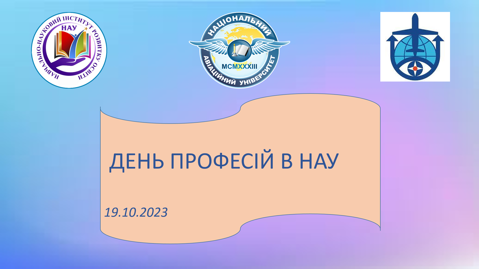 19 жовтня 2023 року відбувся профорієнтаційний захід «День професій» з ФАЕТ в онлайн-форматі для майбутніх абітурієнтів. Організатори заходу – Навчально-науковий інститут розвитку освіти (директор Лазарєва Галина, заслужений працівник освіти України) спільно з Факультетом Факультетом аеронавігації, електроніки та телекомунікацій