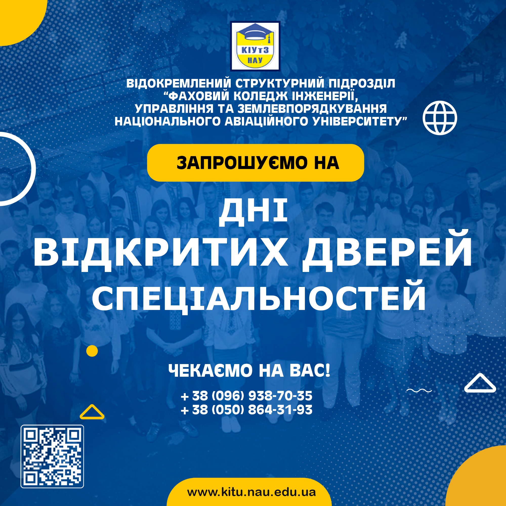 Фаховий коледж інженерії, управління та землевпорядкування Національного авіаційного університету Коледж проводить Дні відкритих дверей спеціальностей 16:00-17:00 по середах дистанційно на платформі ZOOM Ідентифікатор: 986 094 2418 Пароль: 111 http://kitu.nau.edu.ua/news/2036-zaproshuyemo-na-dni-vidkrytyh-dverey-specialnostey |
