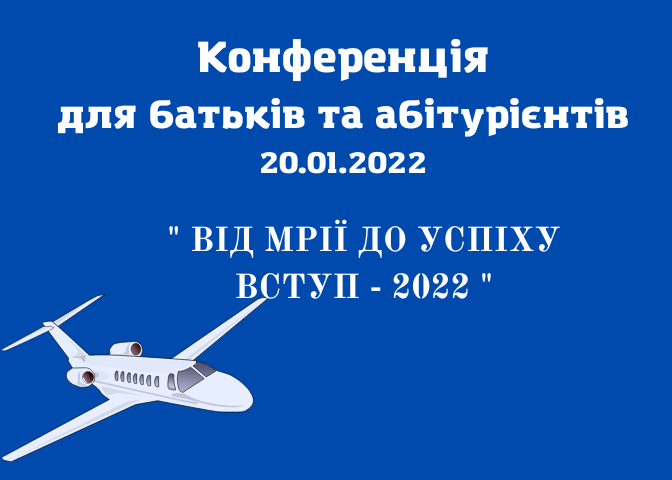 20 січня 2022 року відбулась Конференція для майбутніх абітурієнтів та їхніх батьків, яка була організована Навчально-науковим інститутом розвитку освіти Національного авіаційного університету. Конференція, має символічну назву «Від мрії до успіху. Вступ – 2022», адже вона присвячена питанням вступної кампанії 2022 року.