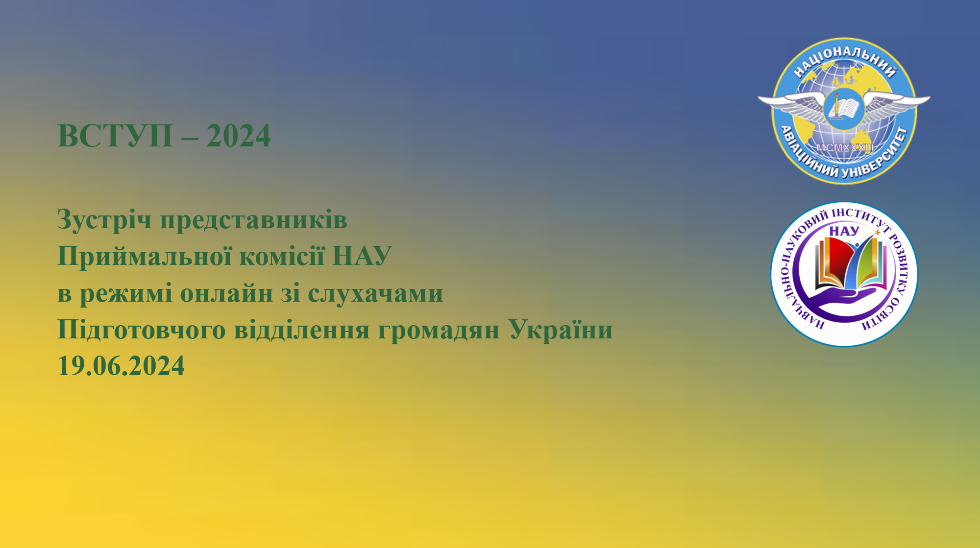 19 червня 2024 року відбулась зустріч в онлайн-форматі з майбутніми абітурієнтами – випускниками закладів загальної середньої освіти, слухачами Підготовчого відділення громадян України та їхніми батьками, яка була організована Навчально-науковим інститутом розвитку освіти НАУ.