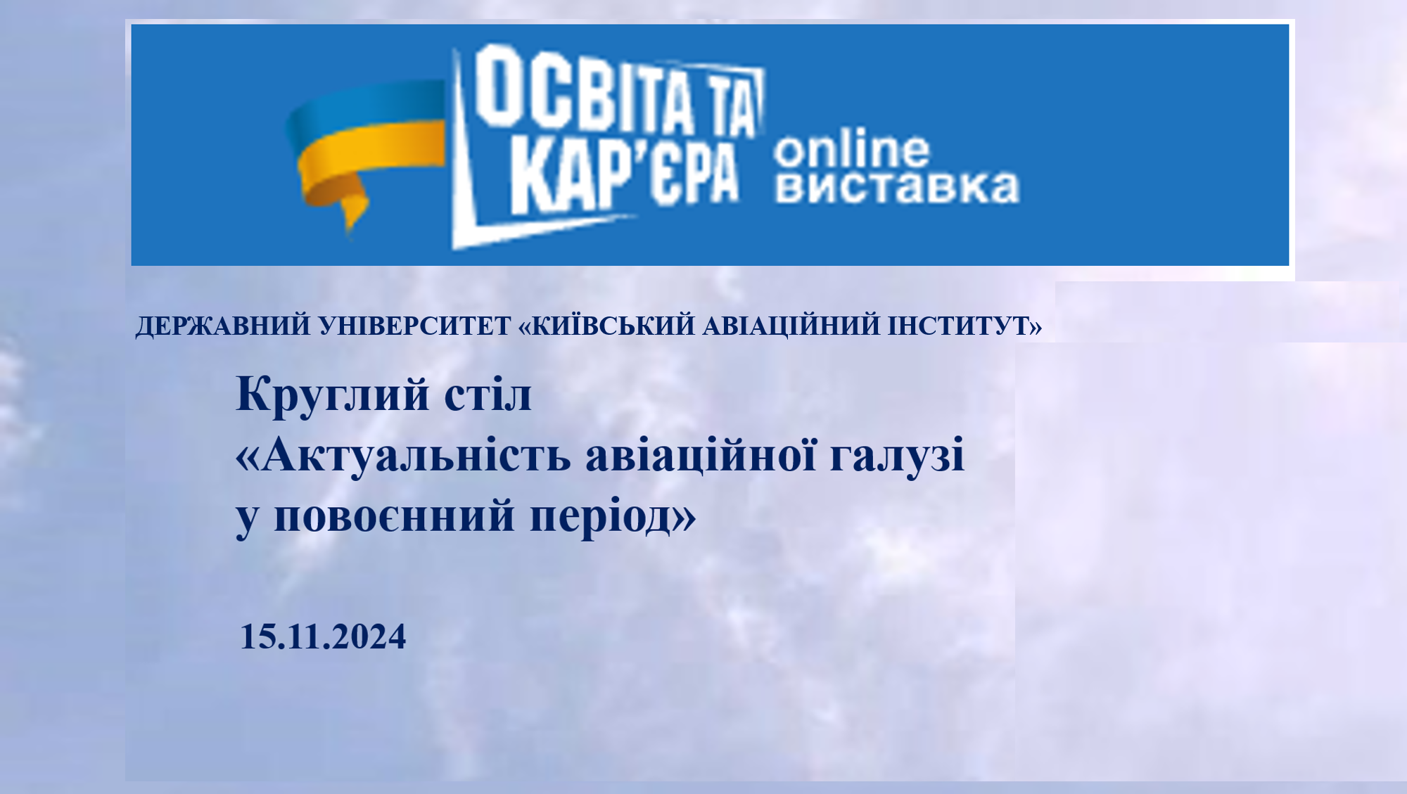 15-16 листопада 2024 року Державний університет «Київський авіаційний інститут» взяв участь у Сорок першій міжнародній спеціалізованій виставці «Освіта та кар’єра – День студента 2024», яка проходила в режимі онлайн за умови дії воєнного стану.